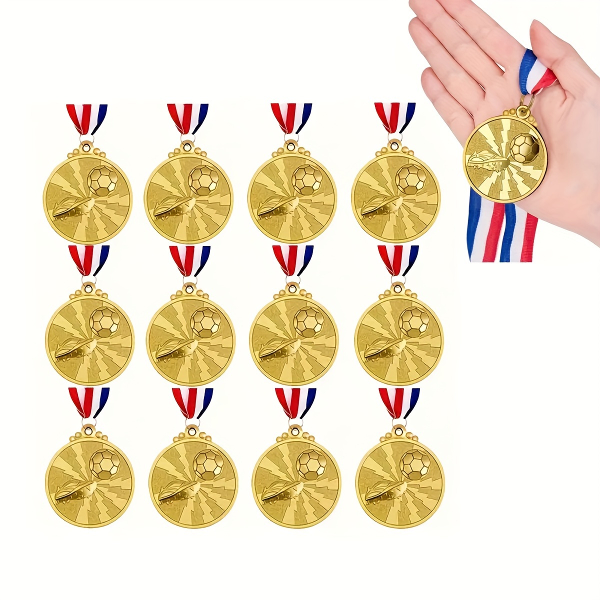 Celebre as conquistas dos jovens atletas com este conjunto de 10 Medalhas de Futebol Douradas para Crianças, um reconhecimento especial para participantes de equipas desportivas, jogos de futebol ou como lembranças de festas temáticas. Cada medalha apresenta um design vibrante e durável com fitilhos coloridos incluídos, permitindo uma apresentação imediata e elegante. Perfeitas para torneios escolares, festas de aniversário com tema desportivo ou como incentivo em treinos, estas medalhas promovem o espírito de equipa e a autoestima dos mais pequenos.