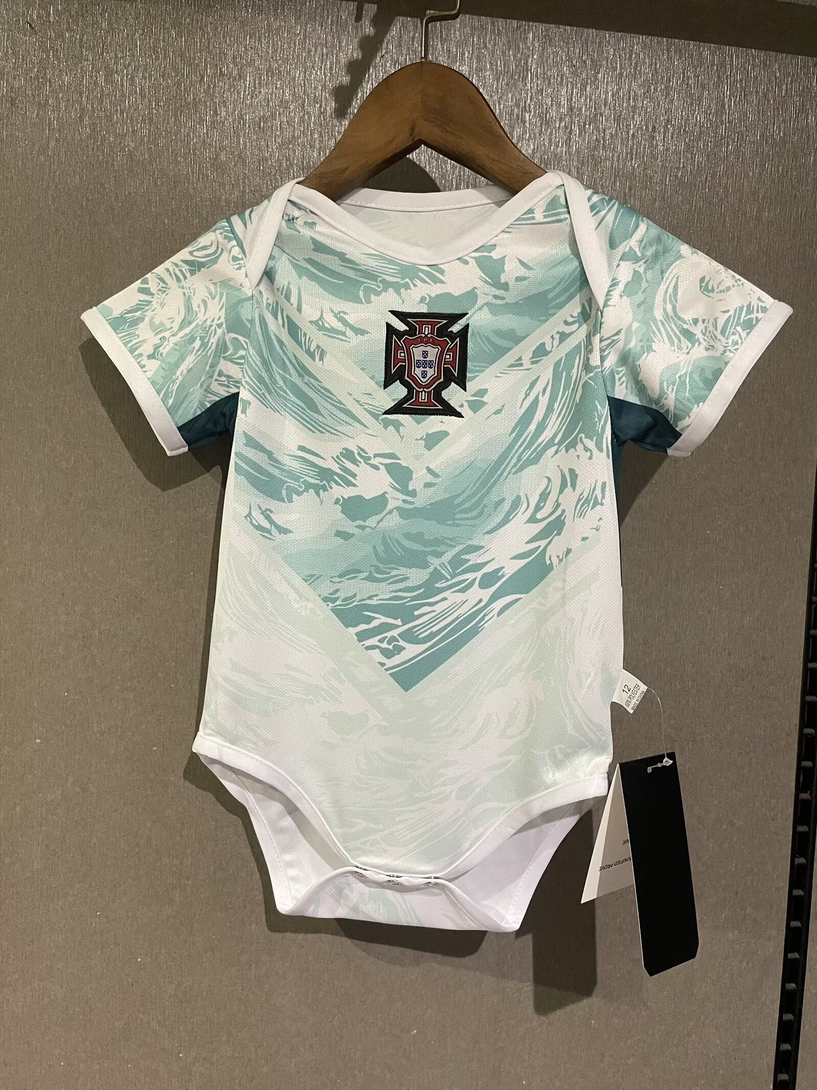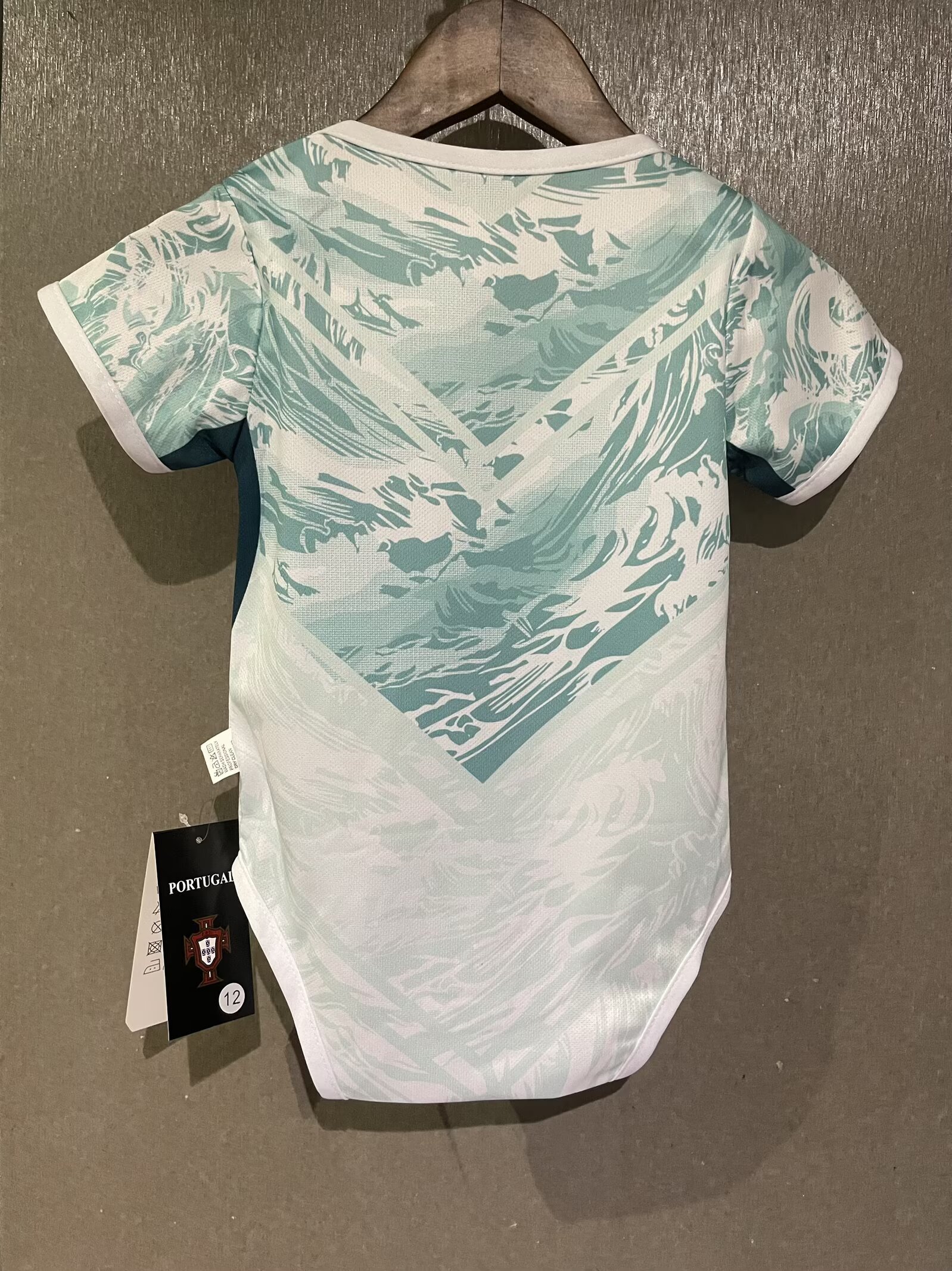 Body (macaquinho) da Seleção Portuguesa de Futebol para o Campeonato do Mundo FIFA 2026, na versão Fora (Away). Destina-se a bebés e crianças pequenas dos 0 aos 24 meses.