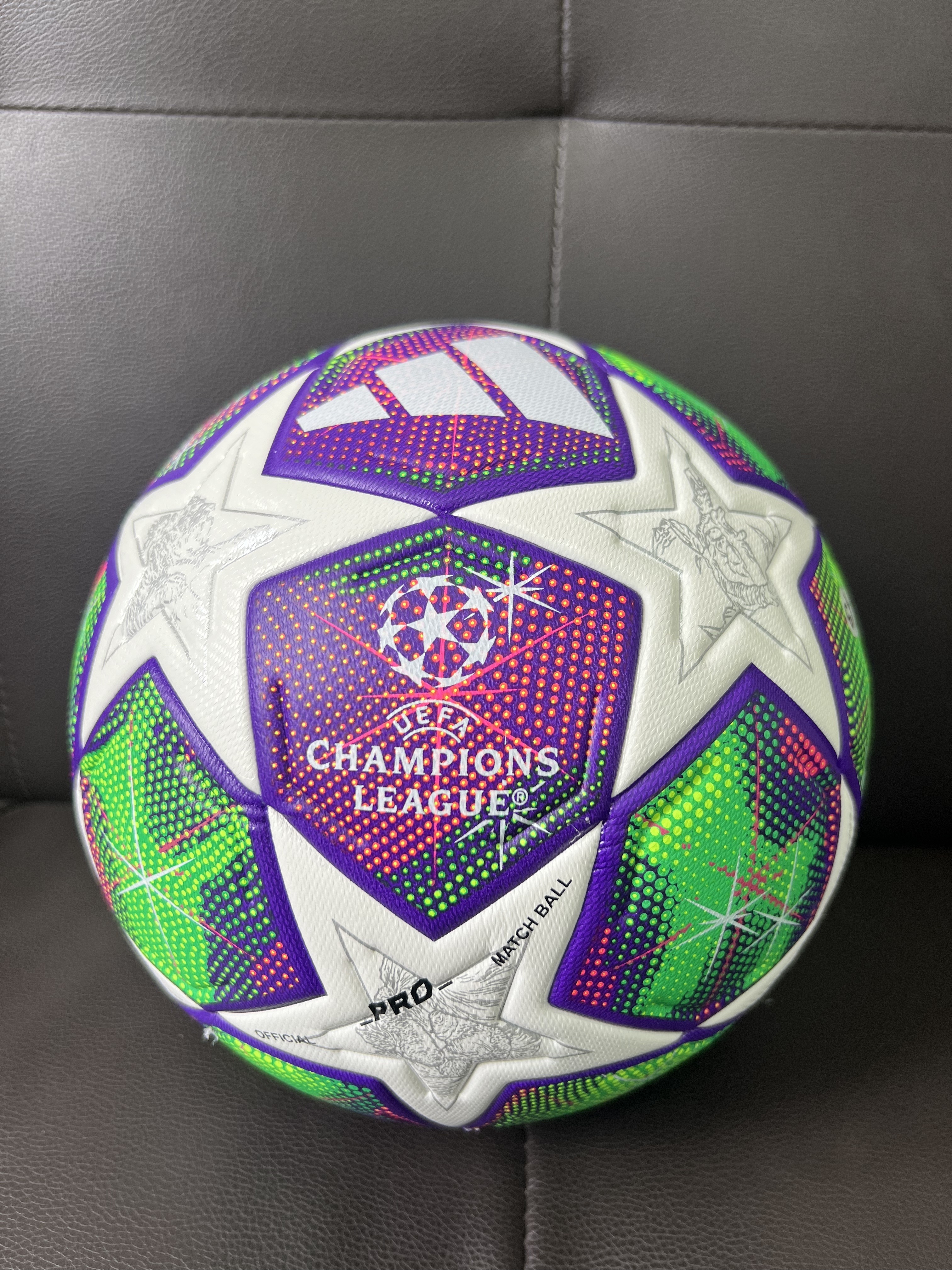 O design icónico da bola apresenta o padrão de estrelas inconfundível da competição, que evoluiu ao longo dos 25 anos de parceria entre a Adidas e a UEFA . Para a época 2025/26, a bola inspira-se nos céus estrelados e nas constelações do zodíaco, simbolizando a busca pela glória eterna que move os maiores clubes europeus .