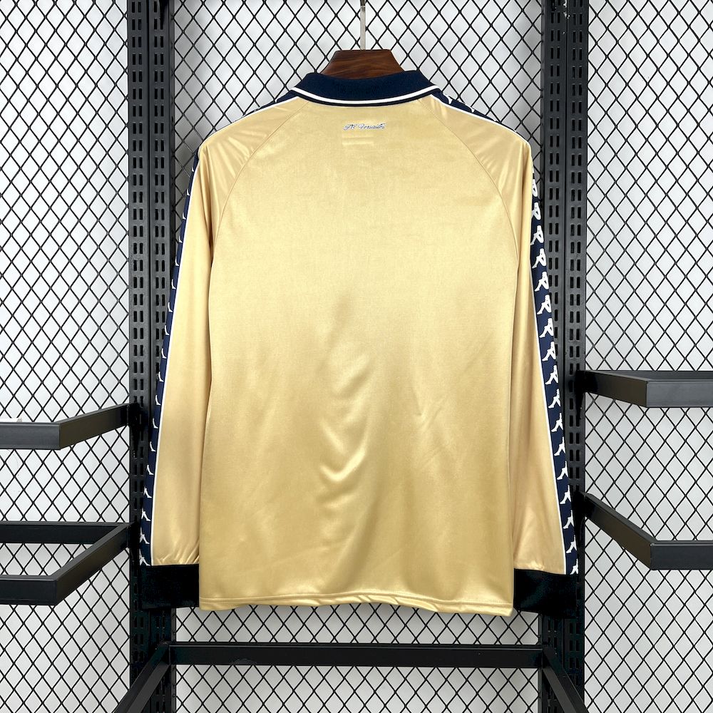 Destacando-se pela sua durabilidade e ajuste confortável, a camisola oferece liberdade de movimento, permitindo que você mostre o seu apoio ao clube com todo o estilo. Além disso, as mangas longas garantem proteção extra em dias mais frescos, tornando-a uma escolha versátil para qualquer estação.