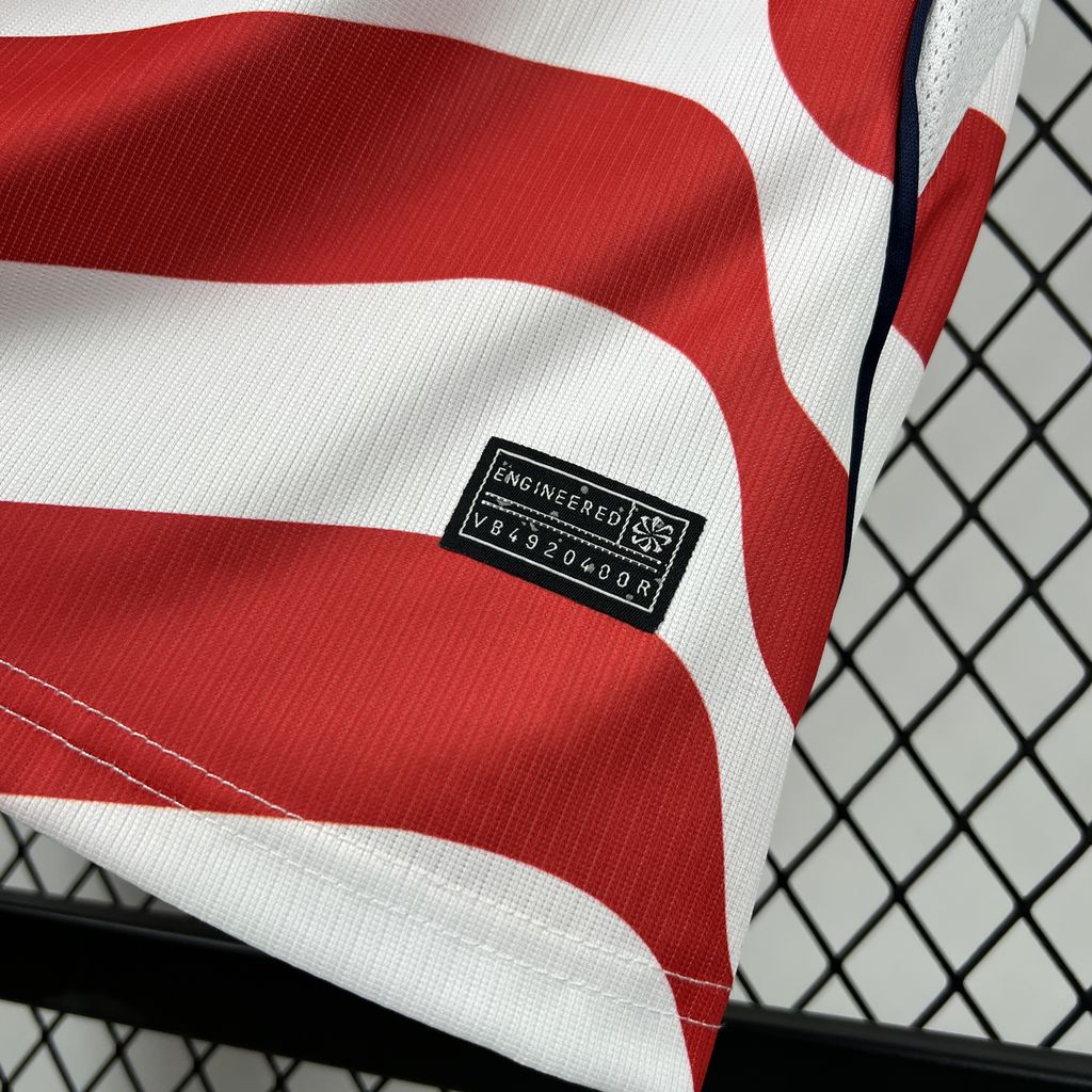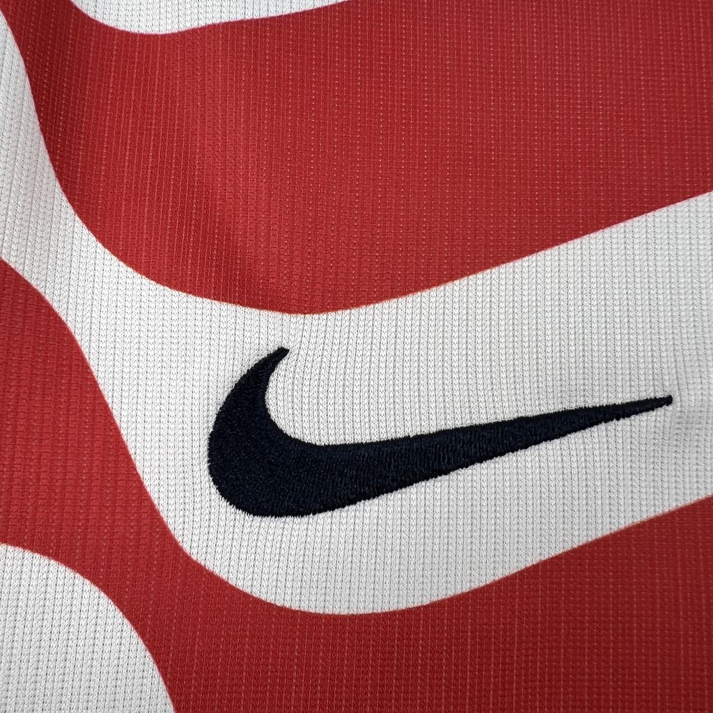 Confeccionada em tecido técnico de alta performance, esta camisola oferece conforto, respirabilidade e liberdade de movimentos, garantindo o máximo desempenho dentro e fora do estádio. O design apresenta as cores tradicionais dos Estados Unidos, com acabamentos premium e o emblema detalhado no peito. Cada elemento desta camisola foi pensado para celebrar a identidade e o orgulho da seleção.