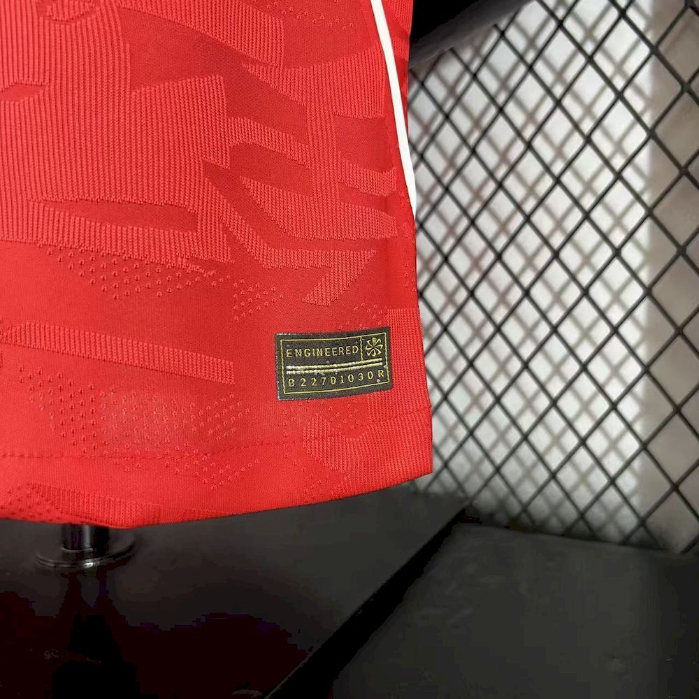 Confeccionada em tecido técnico de elite, esta camisola oferece o máximo em conforto, respirabilidade e liberdade de movimentos, garantindo um desempenho superior dentro e fora do estádio. O design apresenta elementos inspirados na tradição inglesa, com acabamentos premium, tecnologia de gestão de humidade e o emblema detalhado no peito. Cada elemento desta camisola foi pensado para celebrar a identidade e o orgulho da seleção ao mais alto nível.