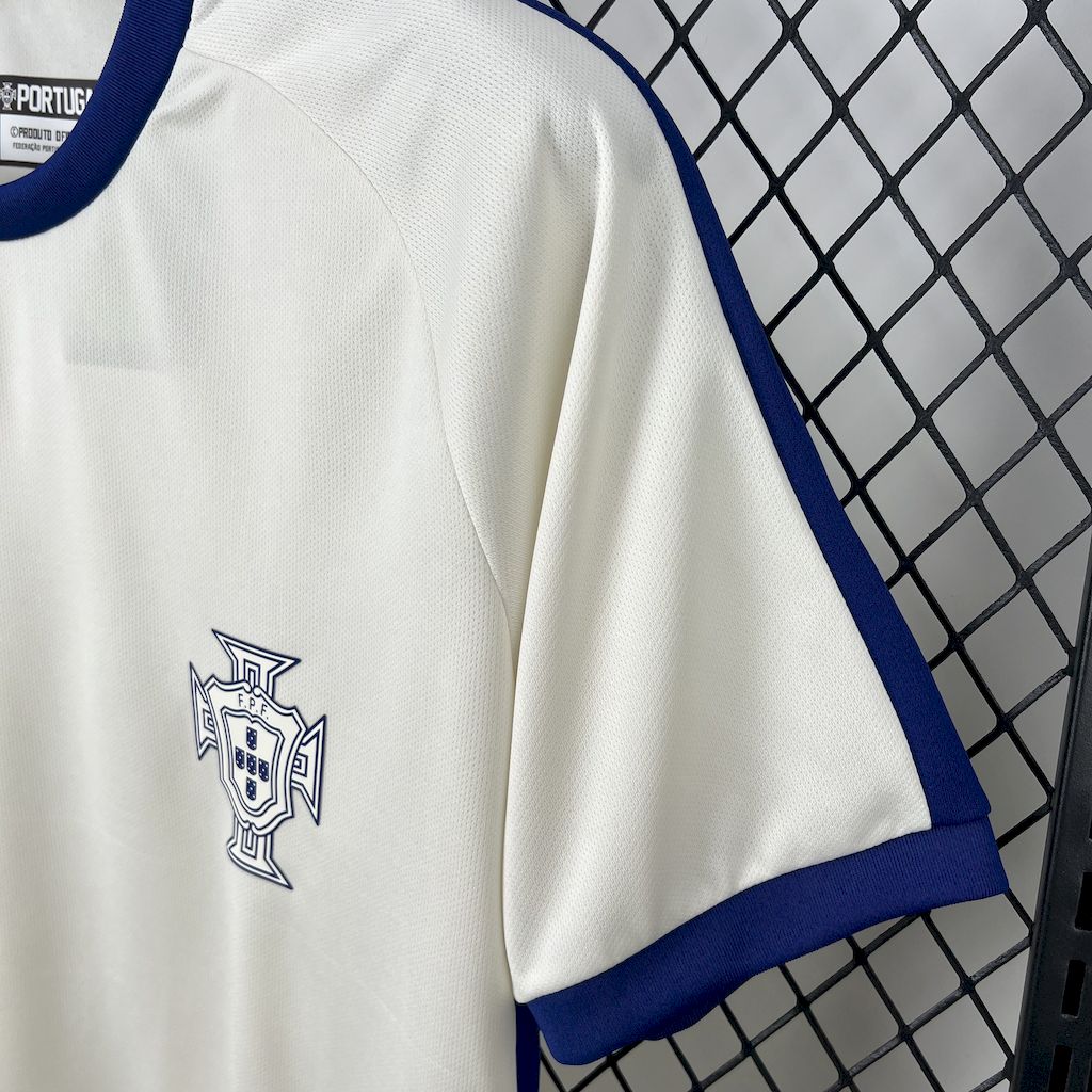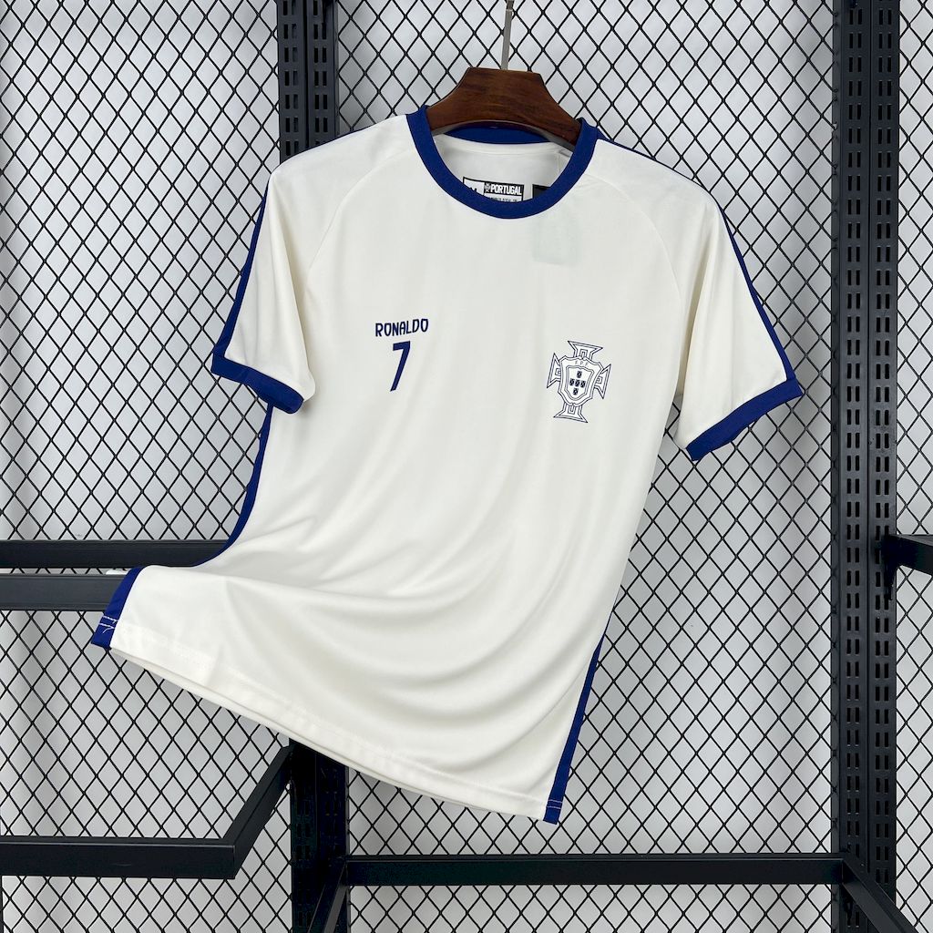 - Design Icónico: Cores branca e azul, com o emblema de Portugal, numero 7 de Cristiano Ronaldo.