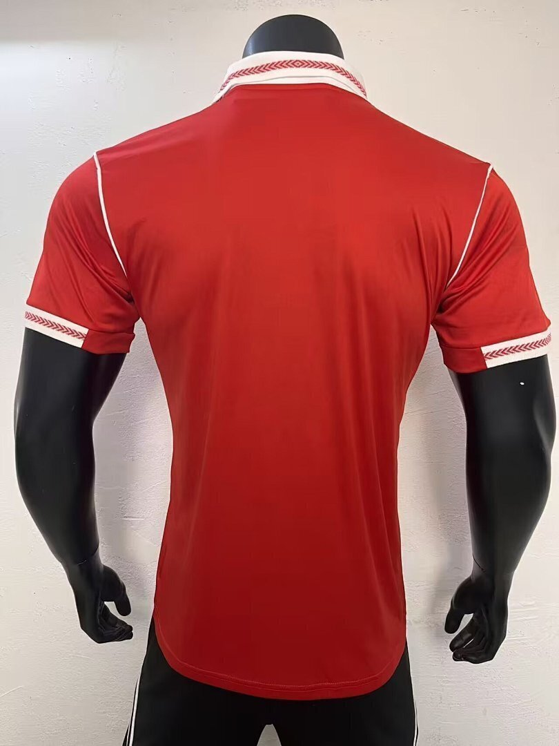 O design desta camisola apresenta as cores tradicionais vermelho e branco, características da década de 90, com o patrocínio do 'Casino Estoril' ao centro.