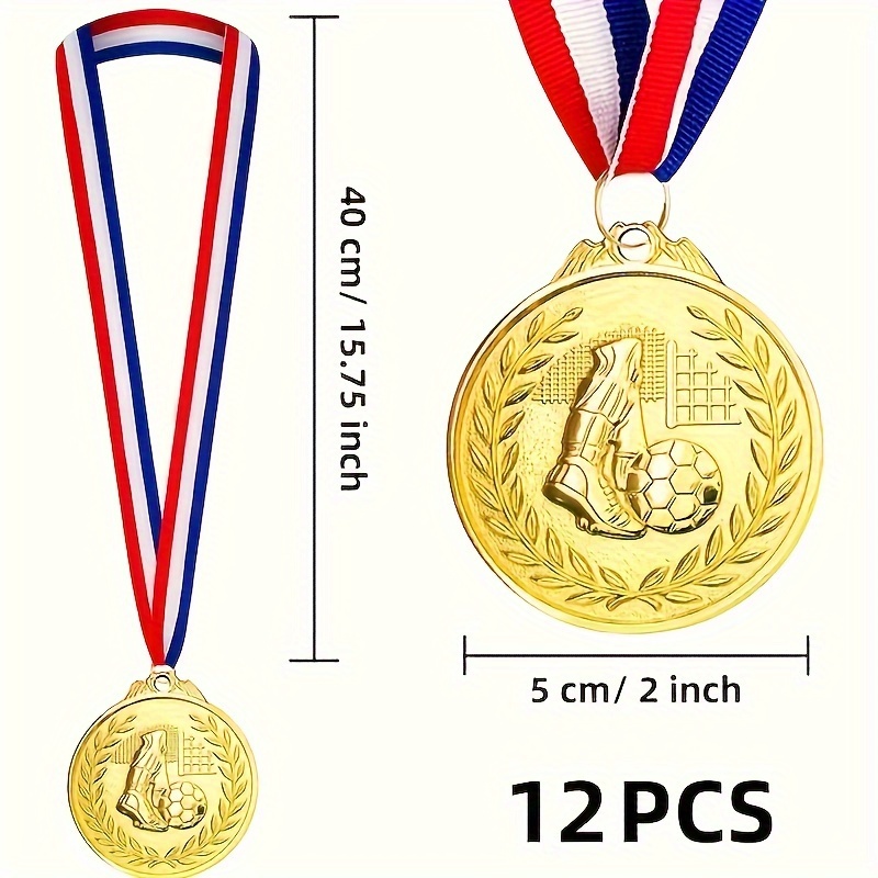 Recompense o mérito desportivo com este conjunto de 12 Medalhas de Futebol em Liga de Zinco de Alta Qualidade, um acessório essencial para premiar participantes em eventos desportivos, competições escolares ou torneios amadores. Cada medalha apresenta um design robusto e detalhado, com um cordão resistente que permite uso imediato e uma apresentação elegante. Fabricadas em liga de zinco durável, estas medalhas mantêm o seu brilho e acabamento mesmo após múltiplas utilizações, tornando-as ideais para reconhecer conquistas em campeonatos, festivais desportivos ou atividades de team building.