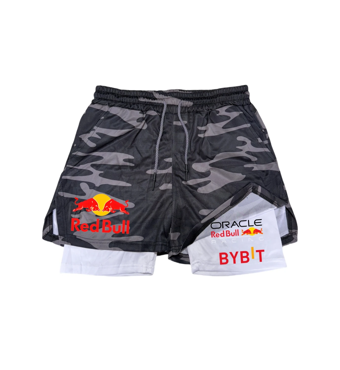 Calções 2-em-1 Red Bull Homem - Dupla Camada Respirável (M-5XL)