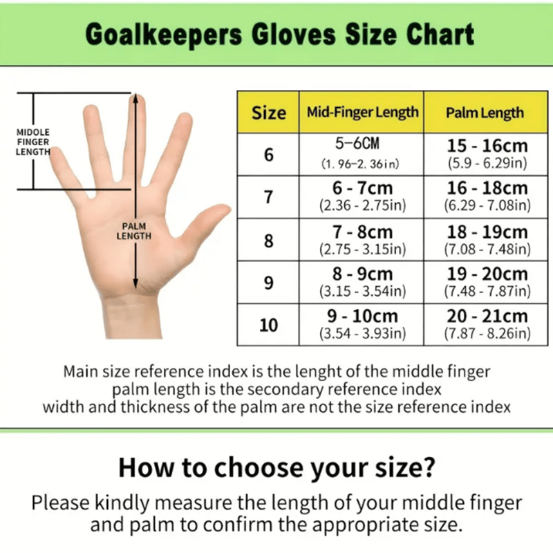 Protect your hands with these Adult Goalkeeper Gloves , essential equipment for playing soccer and similar sports. These professional gloves are made of high-quality latex, offering superior grip and effective cushioning during saves. The Goalkeeper Gloves feature an ergonomic design that fits perfectly to the hands, ensuring comfort and freedom of movement.
