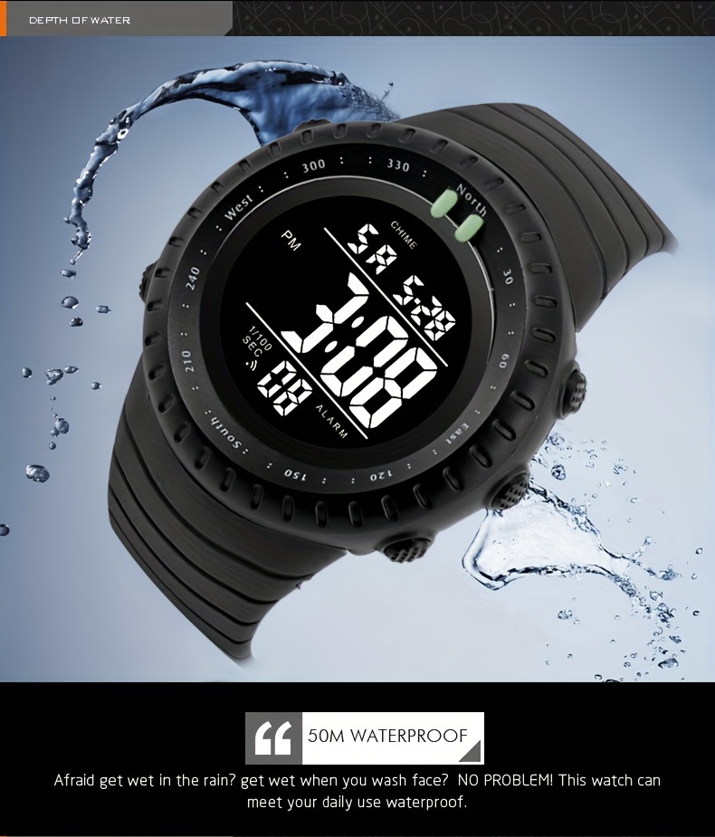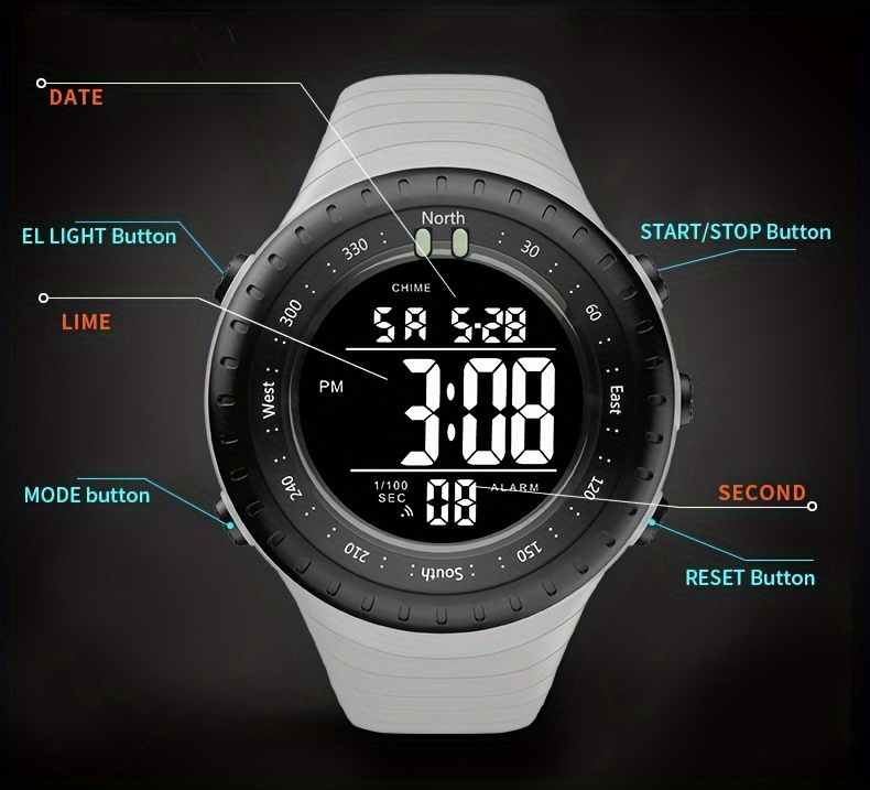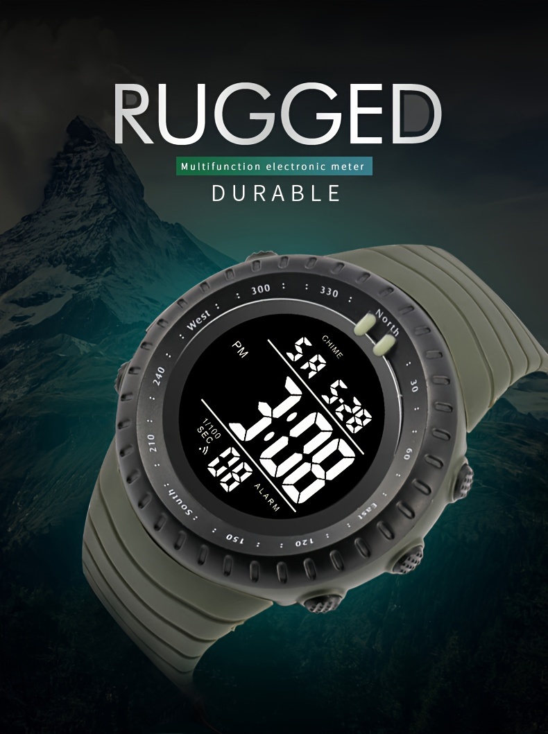 Eleve o seu desempenho atlético com o Relógio Desportivo Masculino Multifunção, um companheiro essencial para atividades ao ar livre como caminhada, natação e treinos de fitness. Este relógio eletrónico moderno combina um design desportivo robusto com construção durável resistente à água, tornando-o ideal para condições de uso exigente. Com funcionalidades avançadas de cronometragem desportiva e monitorização de atividade, o relógio oferece seguimento preciso de métricas de exercício, incluindo contagem de passos, calorias e distância percorrida.