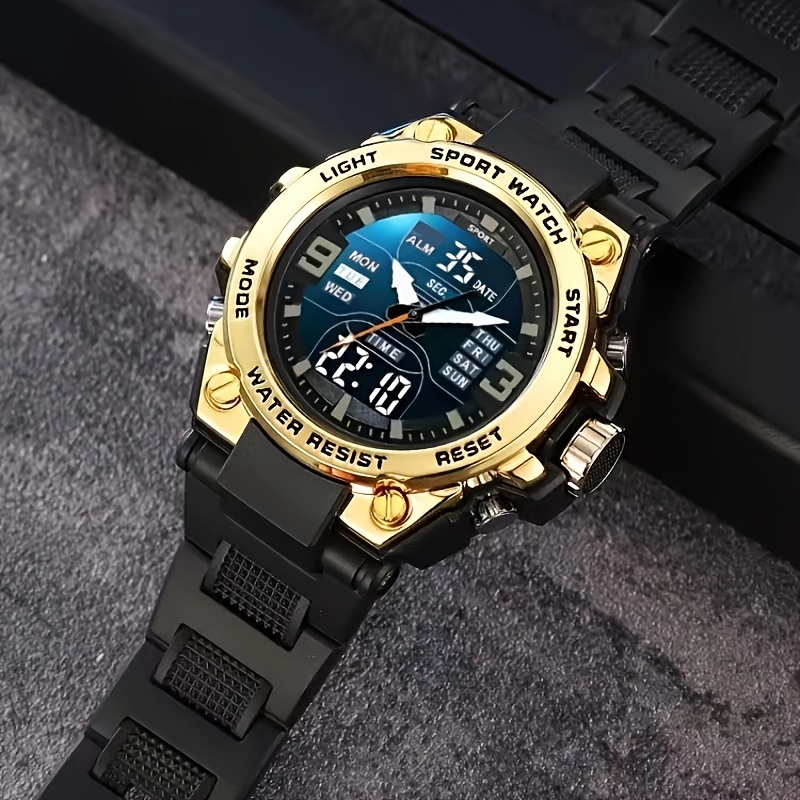Eleve o seu estilo e desempenho com o Relógio Electrónico Masculino Multifunção, uma peça essencial para jovens do ensino básico e secundário que valorizam tendência e funcionalidade. Este relógio desportivo combina um design moderno com tecnologia de monitorização de fitness, permitindo acompanhar métricas de atividade como passos, calorias e distância percorrida. O cronógrafo contemporâneo oferece precisão na medição de tempos, enquanto a pulseira durável garante conforto e resistência para uso diário intenso, seja em treinos, aulas ou momentos de lazer.