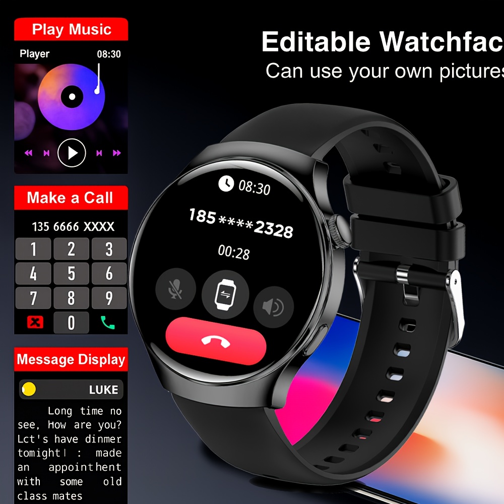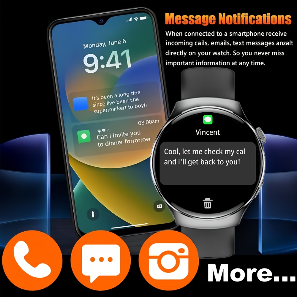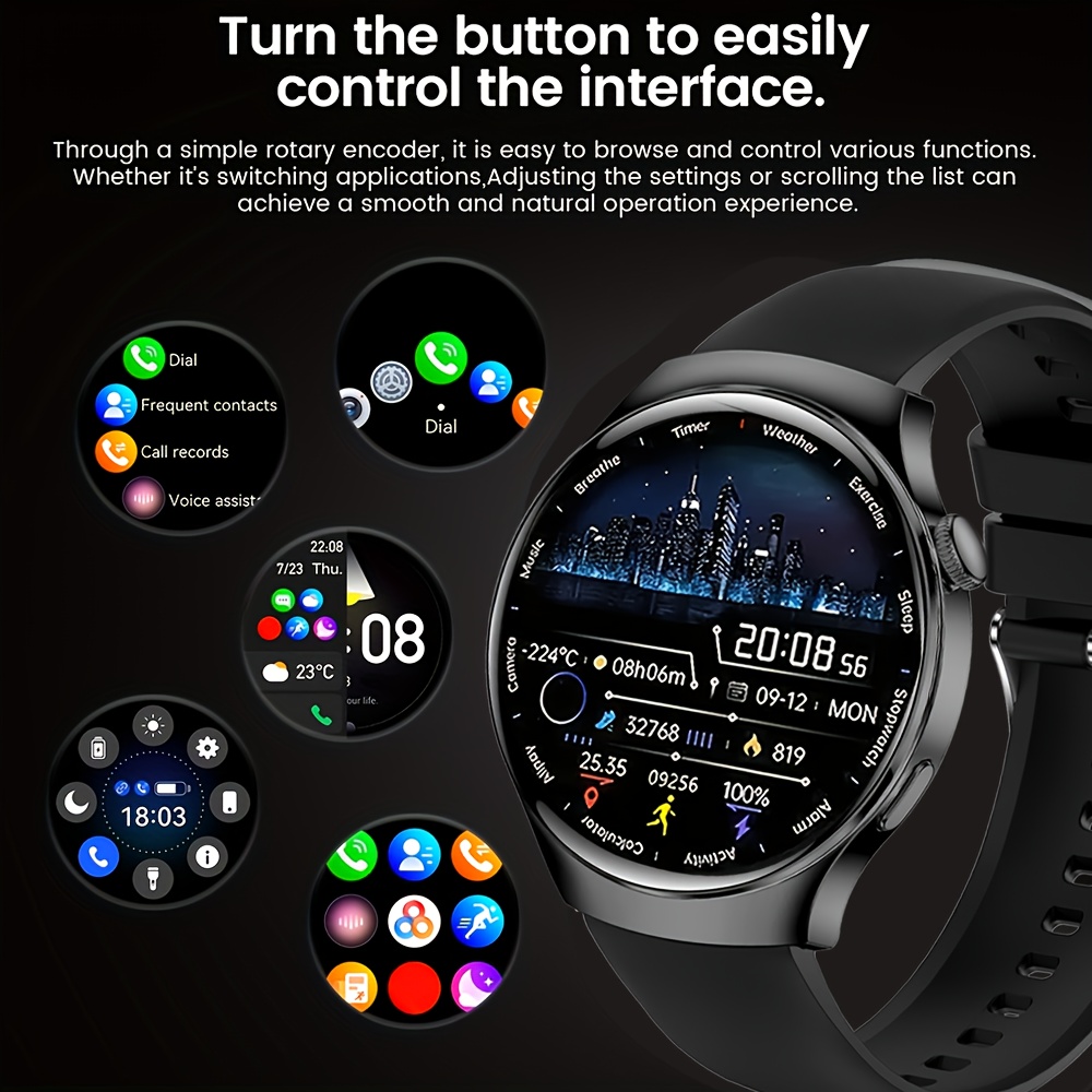 O assistente de voz por IA proporciona um controle por comando de voz intuitivo, e o carregamento por USB garante conveniência e uma bateria de longa duração para uso prolongado. Como um acessório multifuncional, este smartwatch inclui ainda um rastreador de fitness para atividades outdoor, notificações de mensagens e alertas de aplicações, mantendo-o sempre atualizado. Compatível com dispositivos Android e iOS, o Smartwatch Watch4Pro é a fusão perfeita entre tecnologia avançada e um design moderno, tornando-o o companheiro ideal para homens e mulheres que valorizam inovação e estilo.