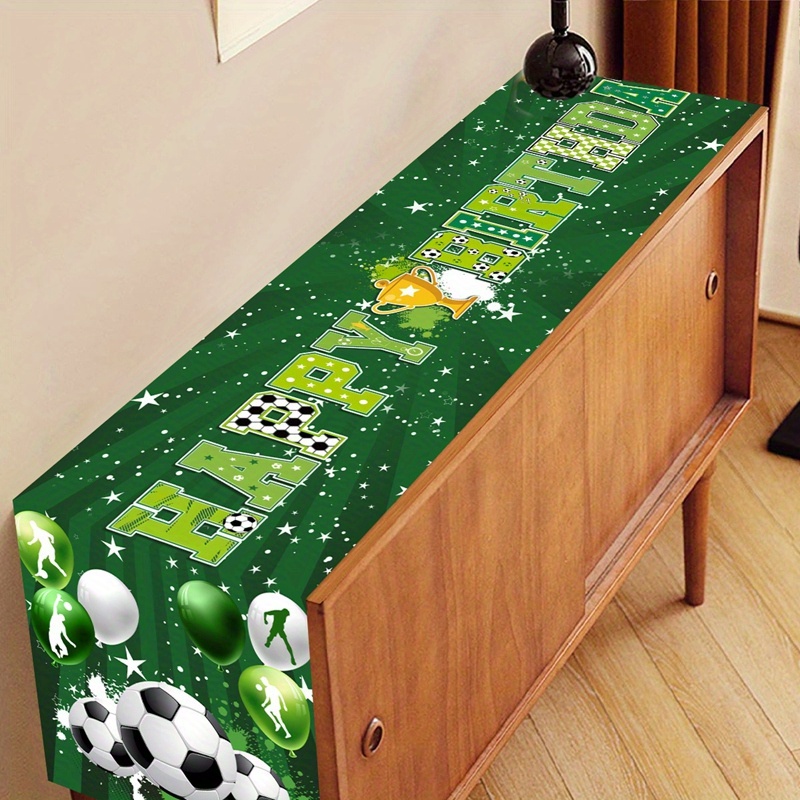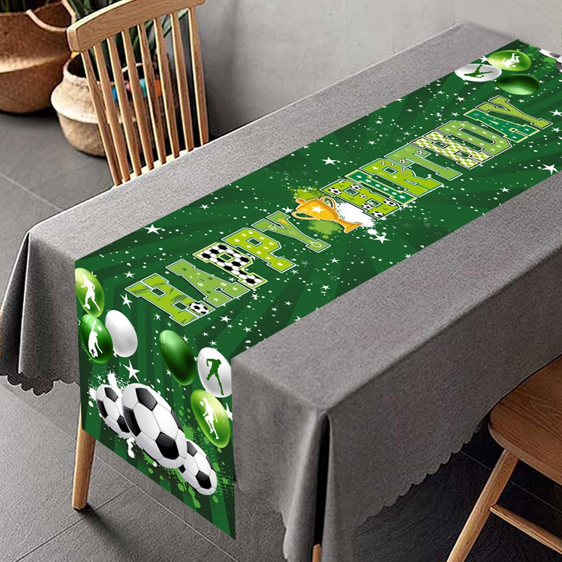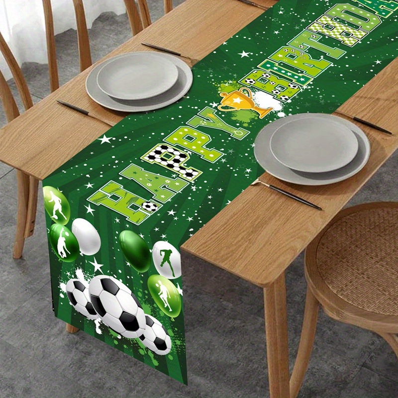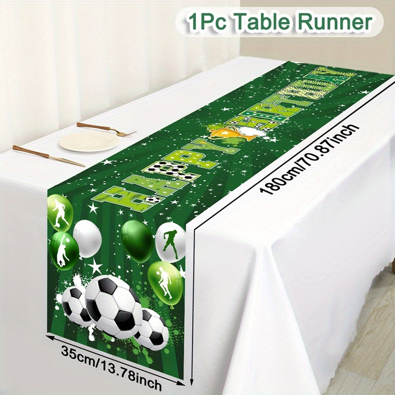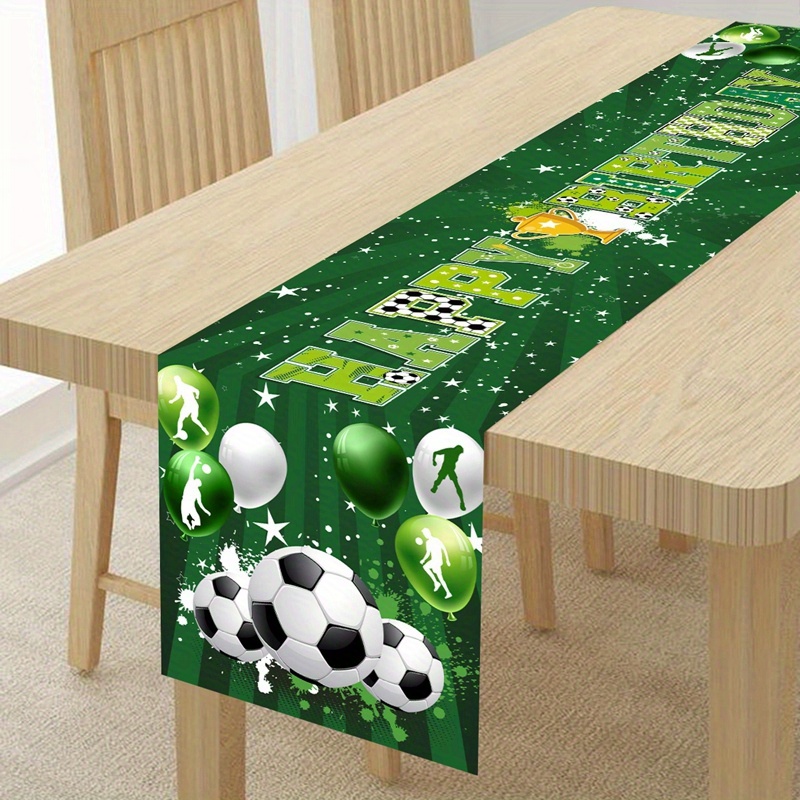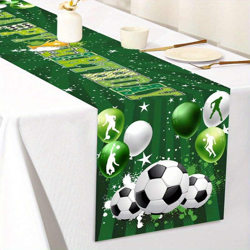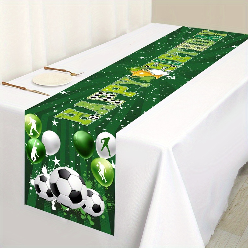 Crie uma mesa temática impressionante com o Tapete de Mesa com Design de Campo de Futebol, a peça essencial para festas de aniversário, celebrações desportivas ou jantares temáticos. Este tapete de mesa apresenta um vibrante campo verde decorado com bolas de futebol, números de 1 a 10, coroas e decorações de baliza, capturando perfeitamente a emoção do futebol. Confeccionado em tecido de alta qualidade à prova de derrames, o Tapete de Mesa de Futebol é fácil de limpar e reutilizável, garantindo praticidade sem comprometer o visual.