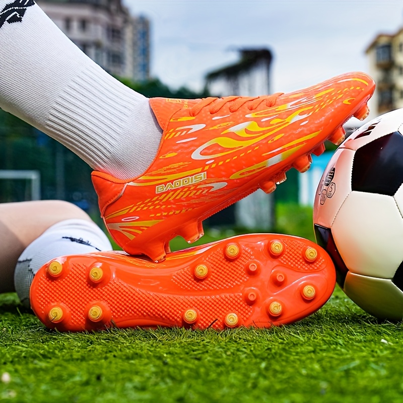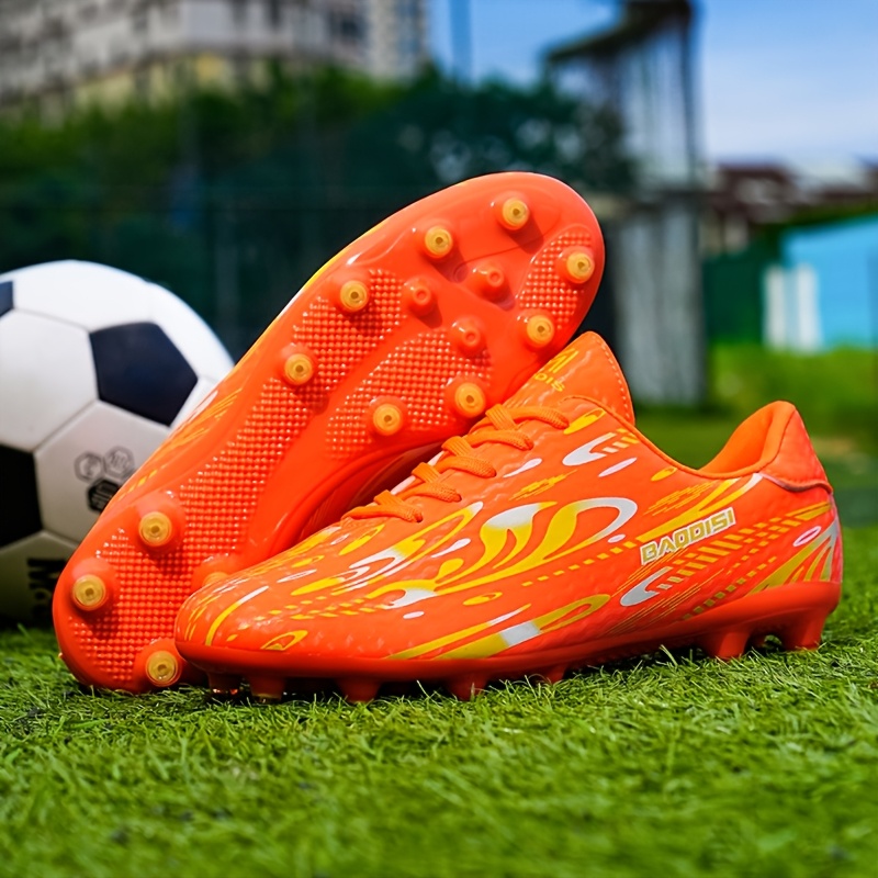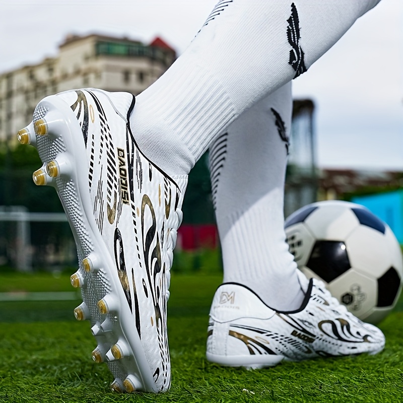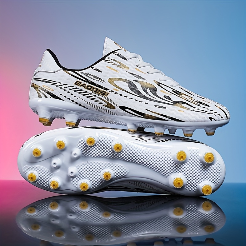 Elevate your performance on the field with these Men's Soccer Cleats , designed to offer superior comfort and traction in all seasons. Featuring a modern design that combines striped and checkered patterns, these cleats stand out for their bold look and functionality. The lightweight and flexible TPU outsole ensures exceptional grip on various surfaces, while the lace-up closure allows for a personalized and secure fit during movement.