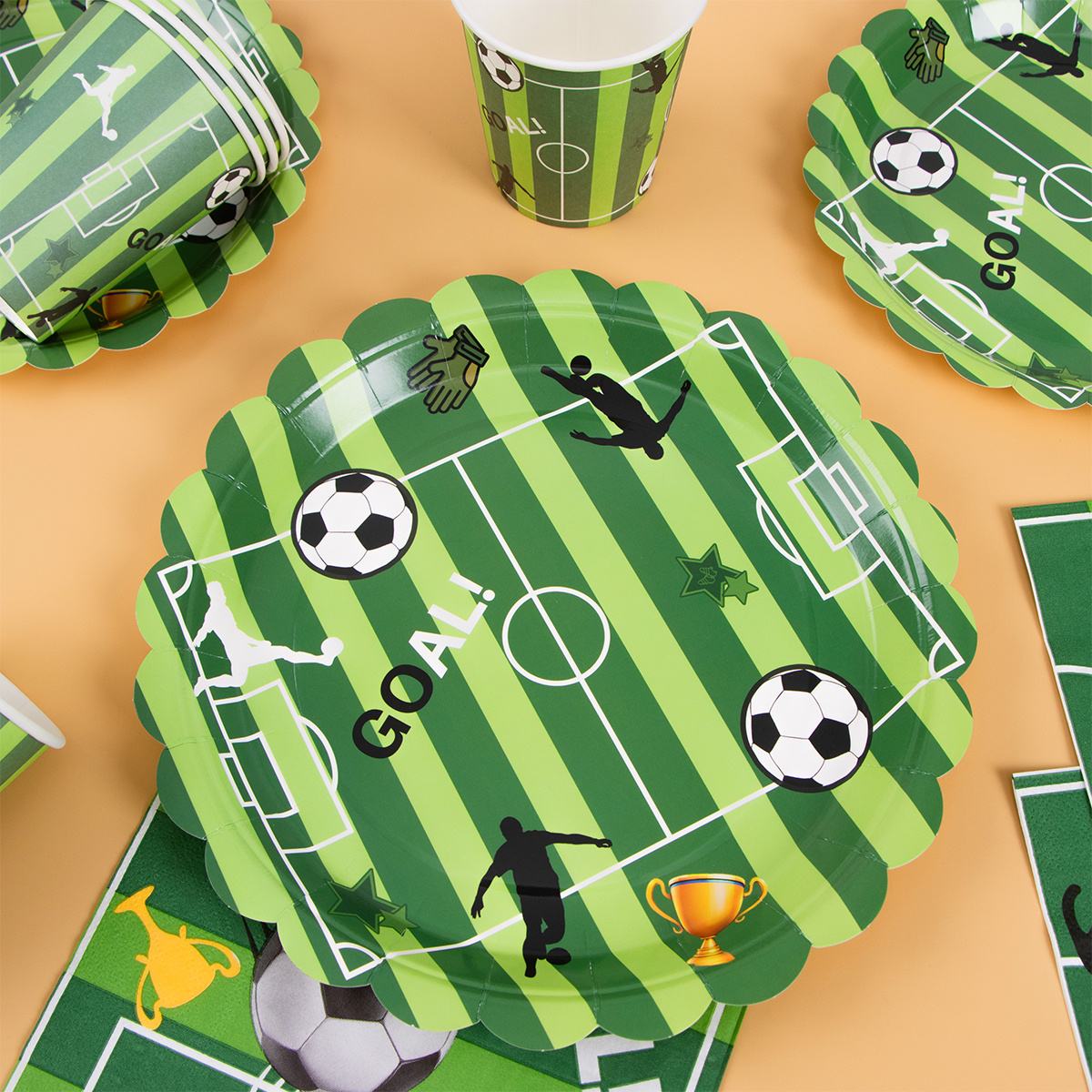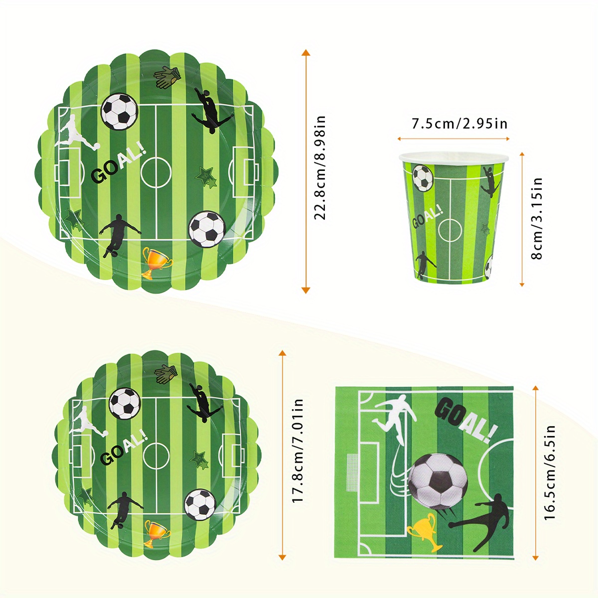 Fabricado em materiais descartáveis de qualidade, este conjunto oferece praticidade e facilidade de limpeza, enquanto os designs resistentes suportam alimentos e bebidas sem comprometer a estética. Os pratos descartáveis de futebol são ideais para servir refeições temáticas, enquanto os copos e guardanapos complementam a decoração de forma coerente. Como essenciais para eventos, estes itens são versáteis para uso em interiores ou ao ar livre, assegurando que cada detalhe contribui para uma celebração memorável e cheia de espírito desportivo.