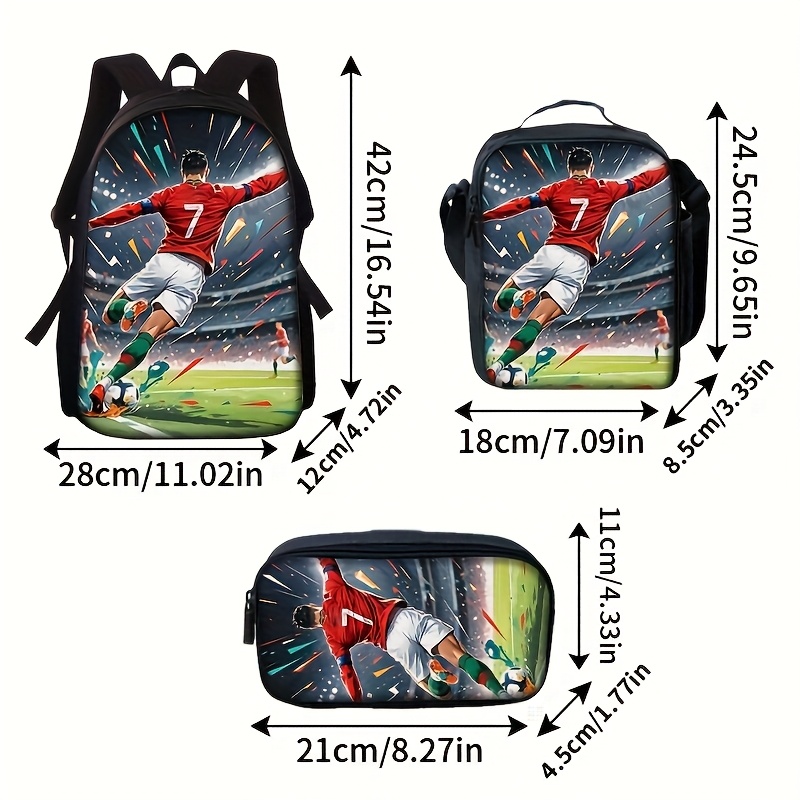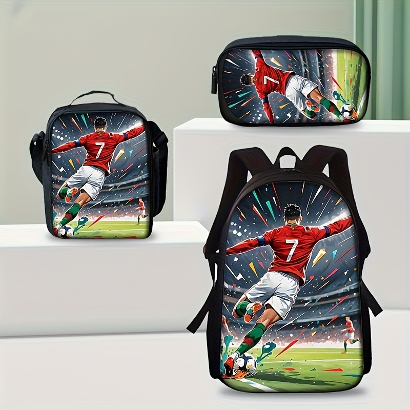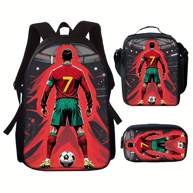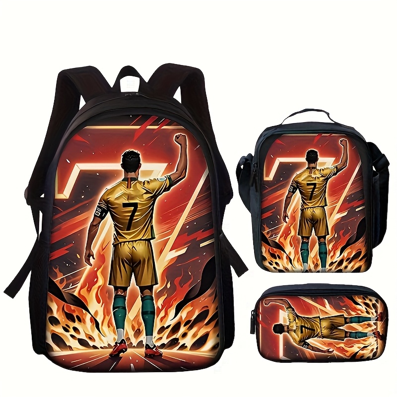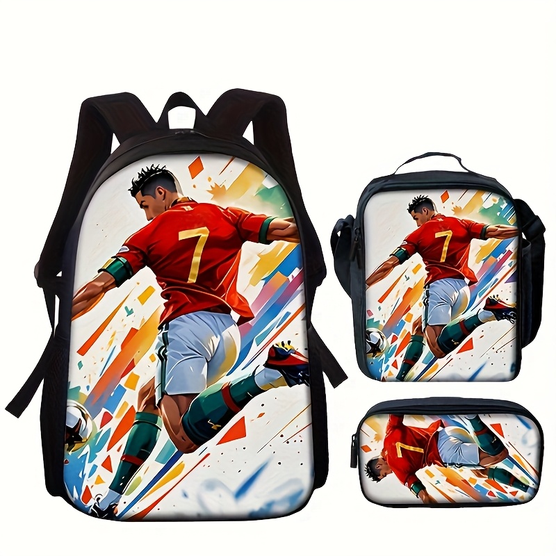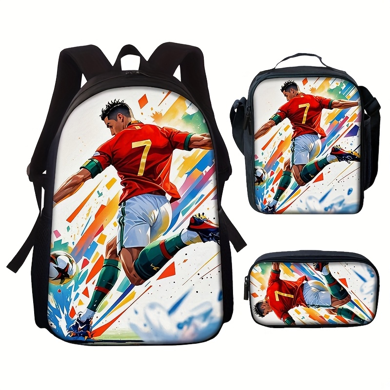 Descubra versatilidade e estilo com a Mochila Casual com Estampa HD do Atleta Nº7, disponível em conjunto de 1 peça ou 3 peças que inclui mochila, bolsa a tiracolo e estojo. Este conjunto unissexo apresenta uma estampa de alta definição de um atleta número 7, celebrando a paixão pelo desporto com um design moderno e dinâmico. A mochila principal é leve e resistente, com um bolso interior prático para organizar os seus pertences, enquanto a bolsa a tiracolo e o estojo complementam o conjunto para uso diário, viagens ou deslocações.