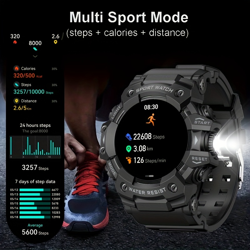 O assistente de voz por IA oferece controle por comando de voz para uma utilização hands-free, enquanto a lanterna LED integrada é prática para situações de pouca luz em trilhos ou acampamentos. A bateria de longa duração garante que o relógio acompanha as suas aventuras prolongadas sem necessidade de carregamentos frequentes. Resistente a intempéries e impactos, este Smartwatch para Entusiastas do Ar Livre é o presente perfeito para homens ativos que valorizam tecnologia, durabilidade e funcionalidade em qualquer ambiente.