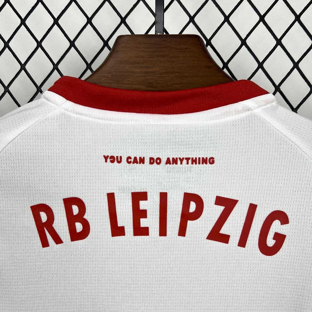 - Design: Cores tradicionais (vermelho e branco) com o emblema do RB Leipzig oficial.