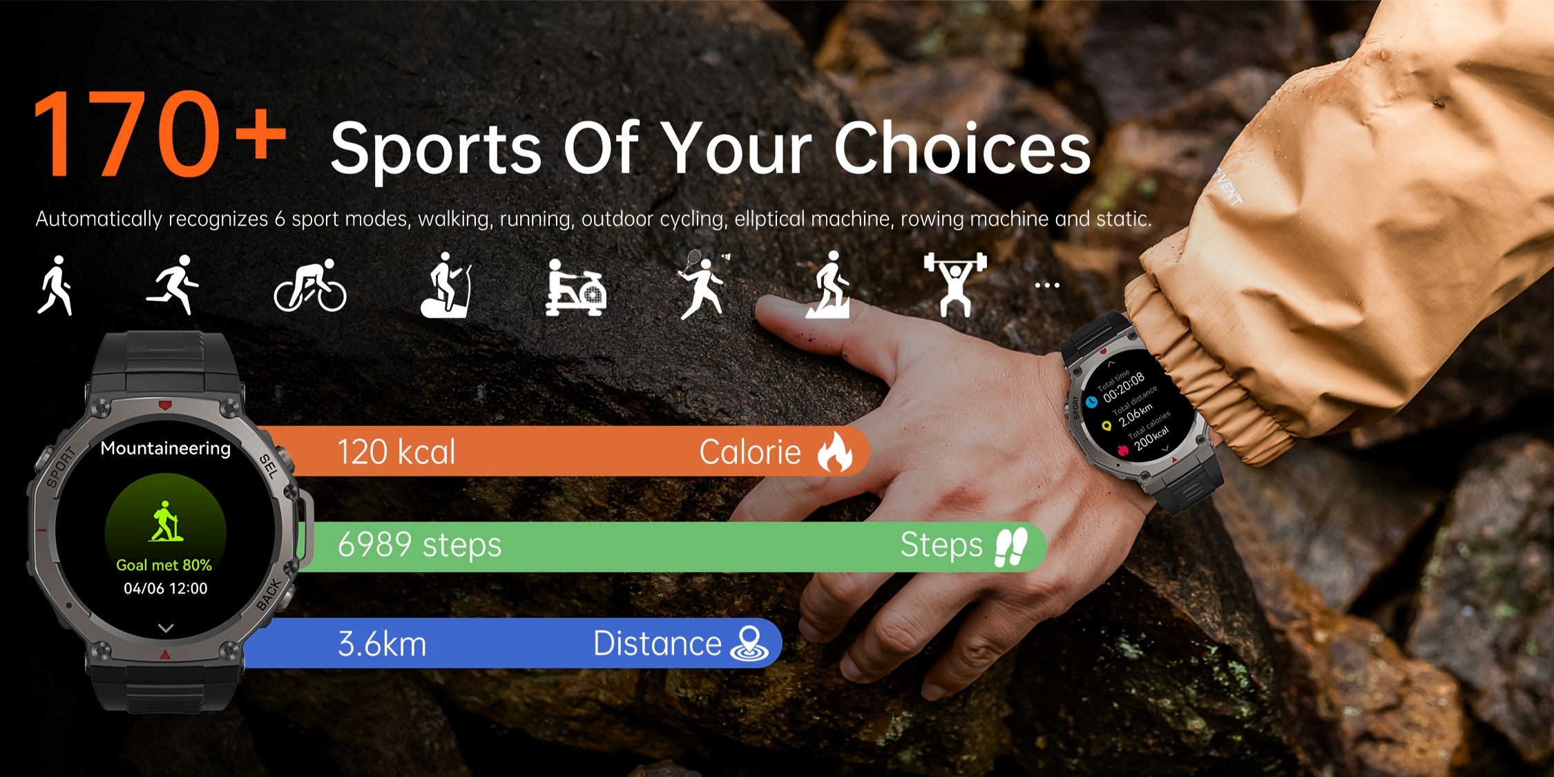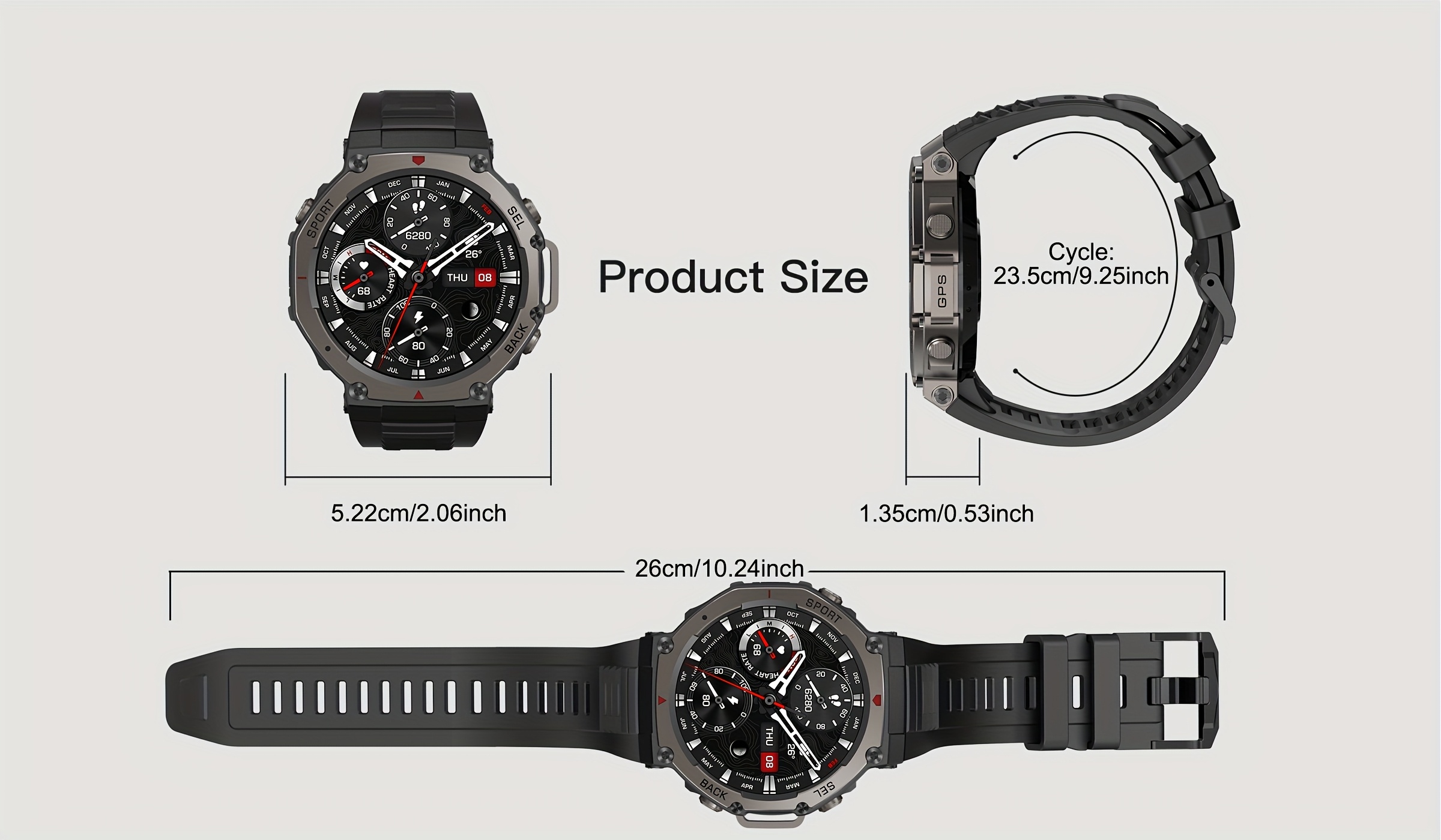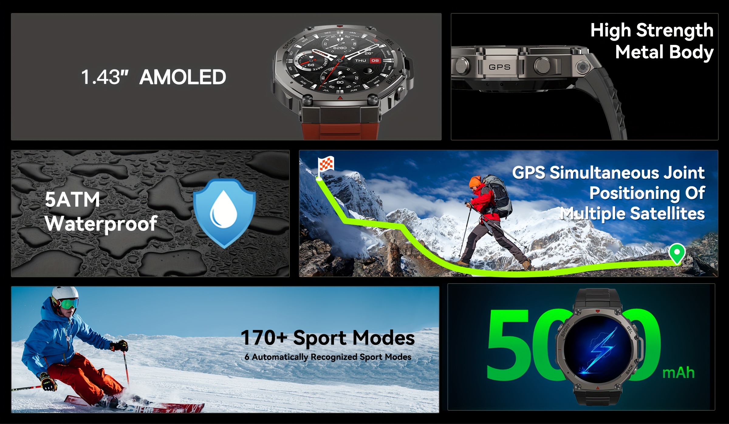 Eleve as suas aventuras com o Novo Smartwatch GUHUAVMI T-Rex 3 2025, um dispositivo robusto concebido para os entusiastas de desportos outdoor. Equipado com um ecrã AMOLED de 3.63 cm que oferece cores vibrantes e excelente legibilidade mesmo sob luz solar direta, este smartwatch inclui GPS integrado para mapeamento preciso de percursos sem dependência do telemóvel. A classificação 5ATM garante resistência à água até 50 metros, tornando-o ideal para natação, mergulho superficial e outras atividades aquáticas.