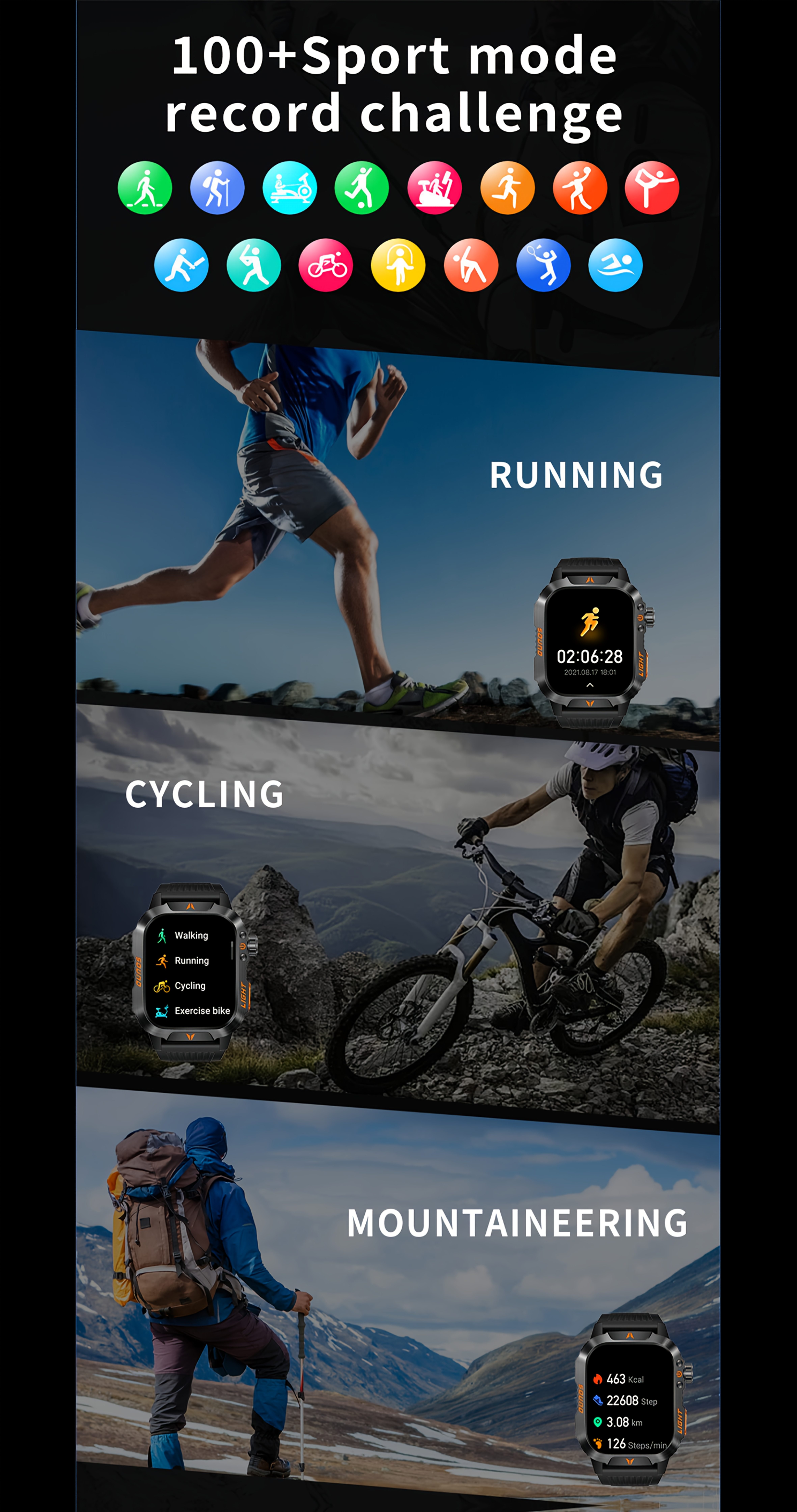 Eleve as suas aventuras outdoor com o Smartwatch Outdoor QTLJJBY, um dispositivo robusto concebido para resistir aos rigores do desporto e da vida ativa. Com uma bateria de 600mAh de longa duração, este smartwatch garante que está sempre operacional durante os seus treinos mais longos ou expedições ao ar livre. A função de atender/efetuar chamadas com toque único permite uma comunicação rápida e conveniente diretamente do seu pulso, mantendo-o conectado sem necessidade de recorrer ao telemóvel. A classificação IP68 à prova de água assegura resistência a imersões e poeiras, tornando-o ideal para condições climatéricas adversas ou desportos aquáticos.