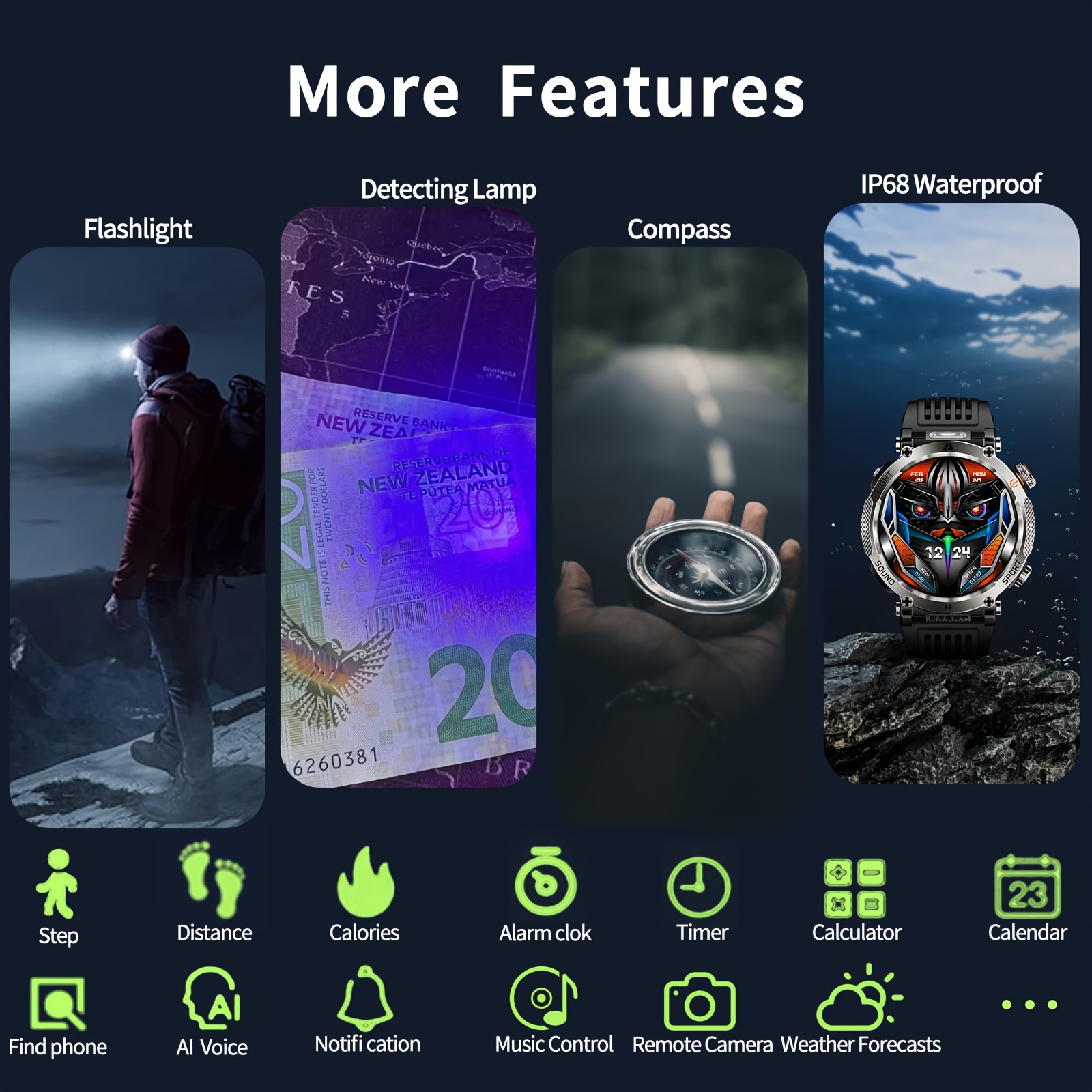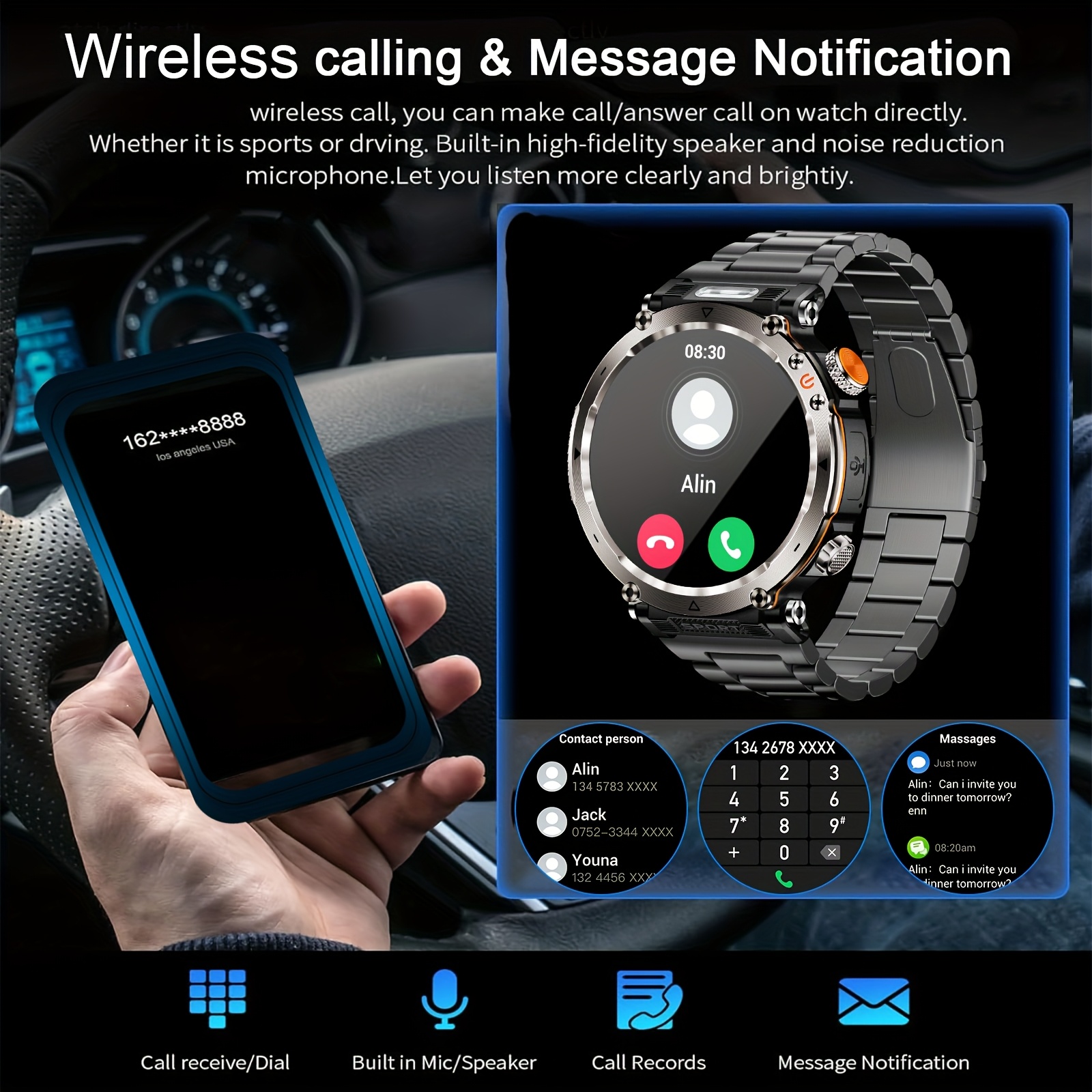 Equipado com mais de 100 modos desportivos, o Smartwatch Synwoo adapta-se a uma variedade de atividades físicas, fornecendo dados detalhados para otimizar o seu desempenho. A lanterna LED integrada é prática para situações de pouca luz, e as funcionalidades de previsão meteorológica e pedómetro ajudam-no a planear os seus dias com precisão. Com uma pulseira em aço inoxidável, conectividade sem fios 5.0 e carregamento magnético, este smartwatch é compatível com dispositivos iPhone e Android, tornando-se o acessório perfeito para homens e mulheres que valorizam estilo, conforto e inovação.